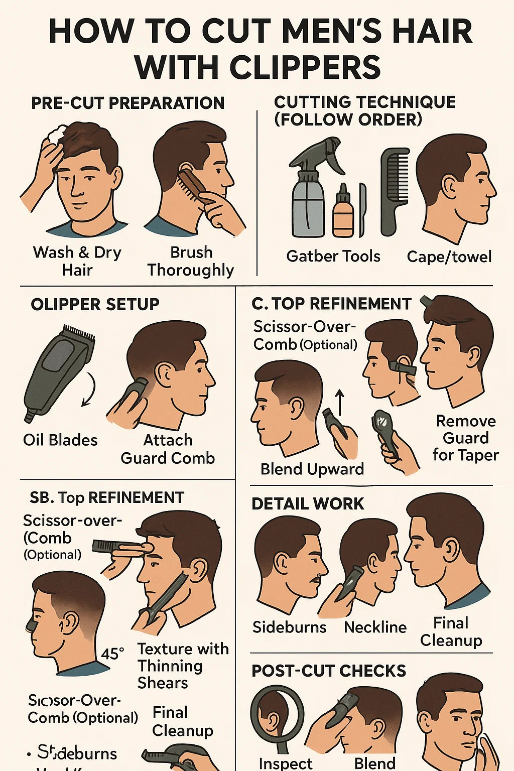 Voici un guide étape par étape pour couper les cheveux des hommes avec tondeuses à cheveux :
